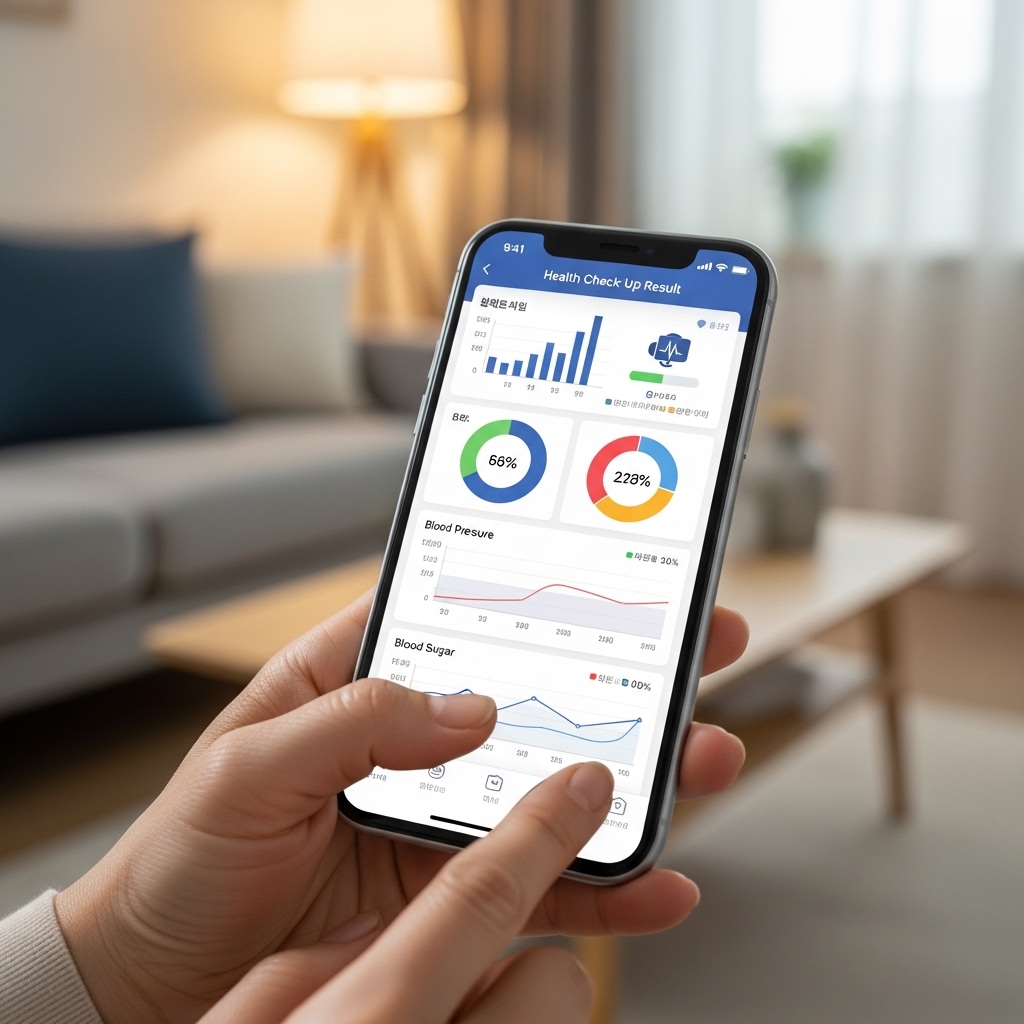 - 검진 결과는 앱으로: 요즘은 종이 우편물 기다릴 필요 없이 스마트폰 앱에서 10년 치 결과를 한눈에 비교할 수 있어 정말 편하더라고요.